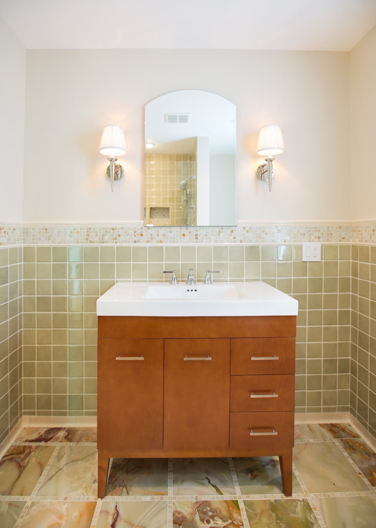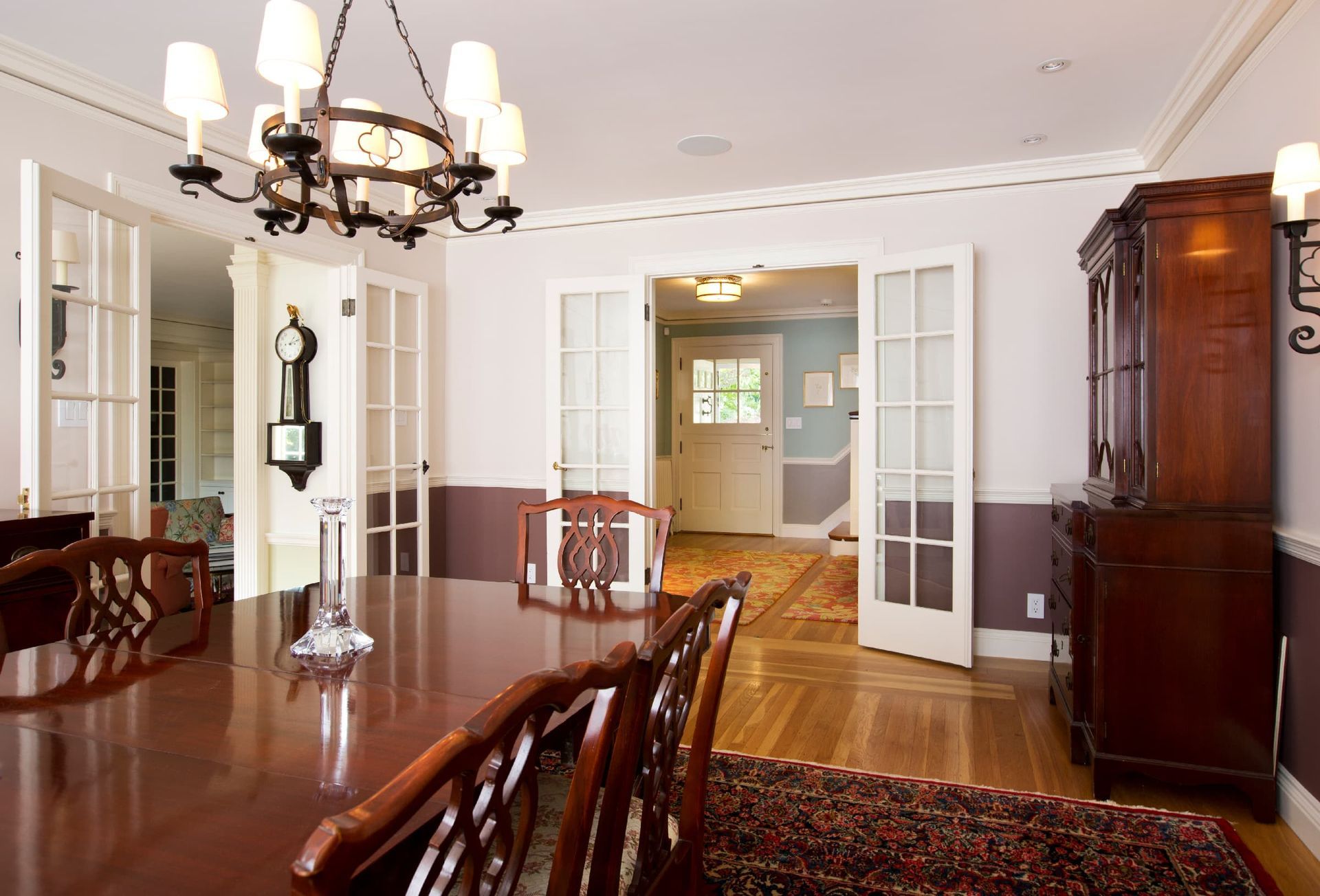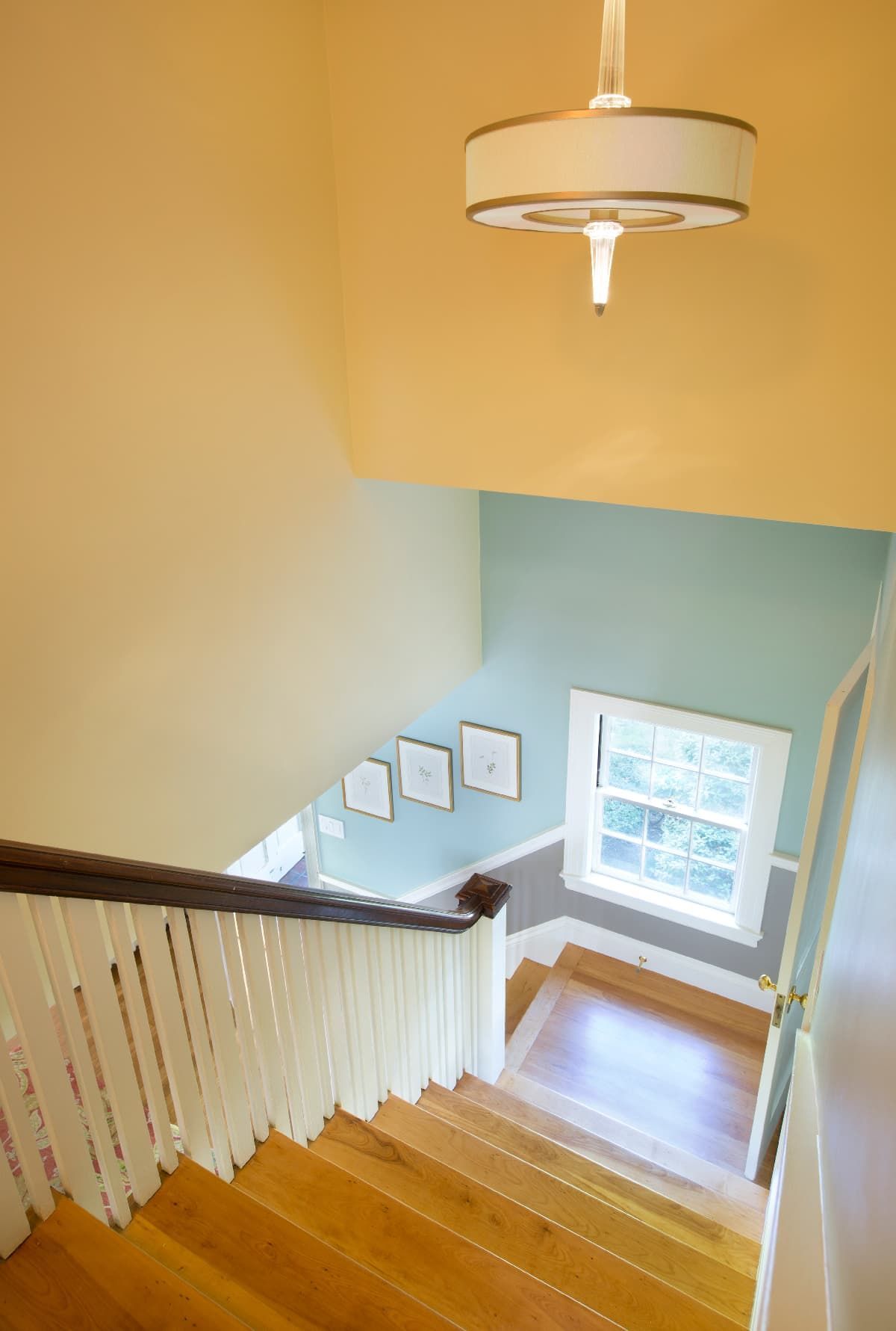 This was a truly comprehensive whole-house remodel. Enhancements as part of this Dutch Gambrel renovation included a complete HVAC and heating system overhaul, fresh paint throughout the entire home, and the installation of a cutting-edge sound system. The bathrooms and kitchen showcase several varieties of hand-laid tiles, while all appliances were upgraded, featuring a chef's range with dual ovens. To maximize functionality, we constructed a custom-made banquette in the kitchen, with both benches incorporating ingenious hidden storage accessed via side-mounted drawers. To bring the interior stairs up to code, we elevated the ceiling by 18 inches, widened the staircase, and fitted a stylish new light fixture from Circa Lighting.